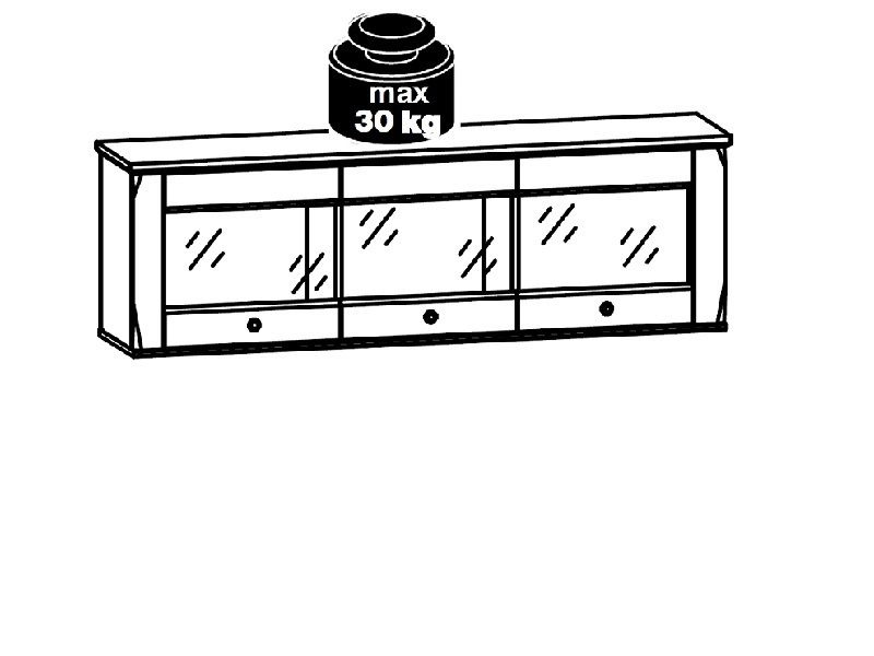 Závěsná vitrína SFW3W ze sektoru BERGEN - je třídvířková částečně prosklená.