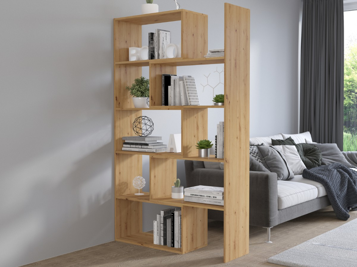 Regál BUNDA 2 je moderní a praktický kus nábytku. Variabilita spočívá v tom, že regál můžete ustavit do rohu, nebo jej nechat v přímce a korigovat jen délku. Možnost zasunout, vysunout nebo vytočit je jednoduše cool. Sami si určíte, která varianta vám bude vyhovovat. Maximální šířka je 125 cm. Regál je vyroben z lamina v dekoru dub artisan.