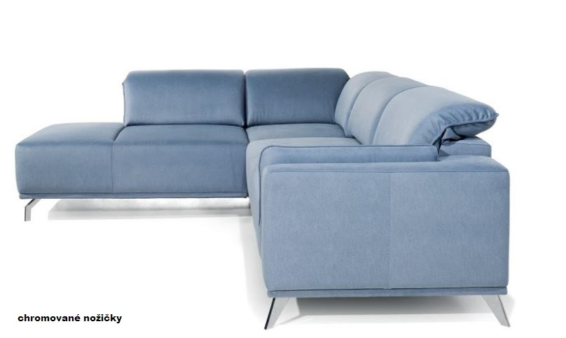 Moderní, pohodlná rohová sedací souprava. Sedačka je rozkládací s lůžkem ro příležitostné přespání a úp. V sedáku jsou použity pružinové vlnovce a ododlná PUR pěna. Rohovka je vybavená moderními nástavitelnými opěrkami hlavy, má kovové nožičky - černé nebo chromované, výběr uveďte prosím do poznámek. Velký výběr potahových látek je samozřejmostí.
