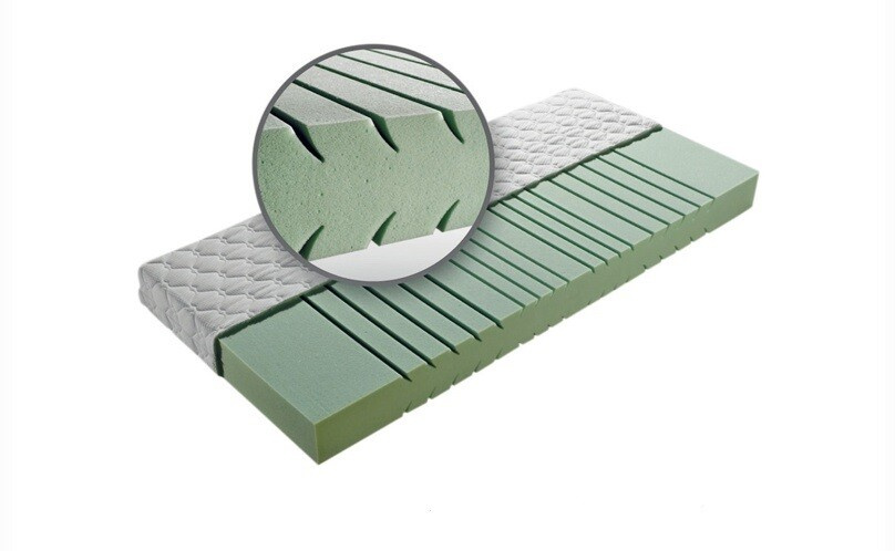 NELLY plus. Matrace z kvalitních pěn, která je díky speciálnímu zámkovému systému vyrobená bez použití lepidel. Jádro je složeno z desek z polyuretanových pěn o nižší (žlutá pěna) a vyšší (růžová pěna) tuhosti, což umožňuje výběr měkčí a tvrdší strany matrace. Komfort lehací plochy měkčí strany je zvýšen tvarovým prořezem, který zajišťuje lepší odvětrávání povrchu matrace. Velká výška matracového jádra zajišťuje zvýšený lehací komfort těla uživatele. Matrace je opatřena snímatelným, pratelným potahem. Výška matrace v potahu je cca 21 cm. Matrace je opatřena snímatelným a pratelným potahem. Doporučená nosnost do 110 kg