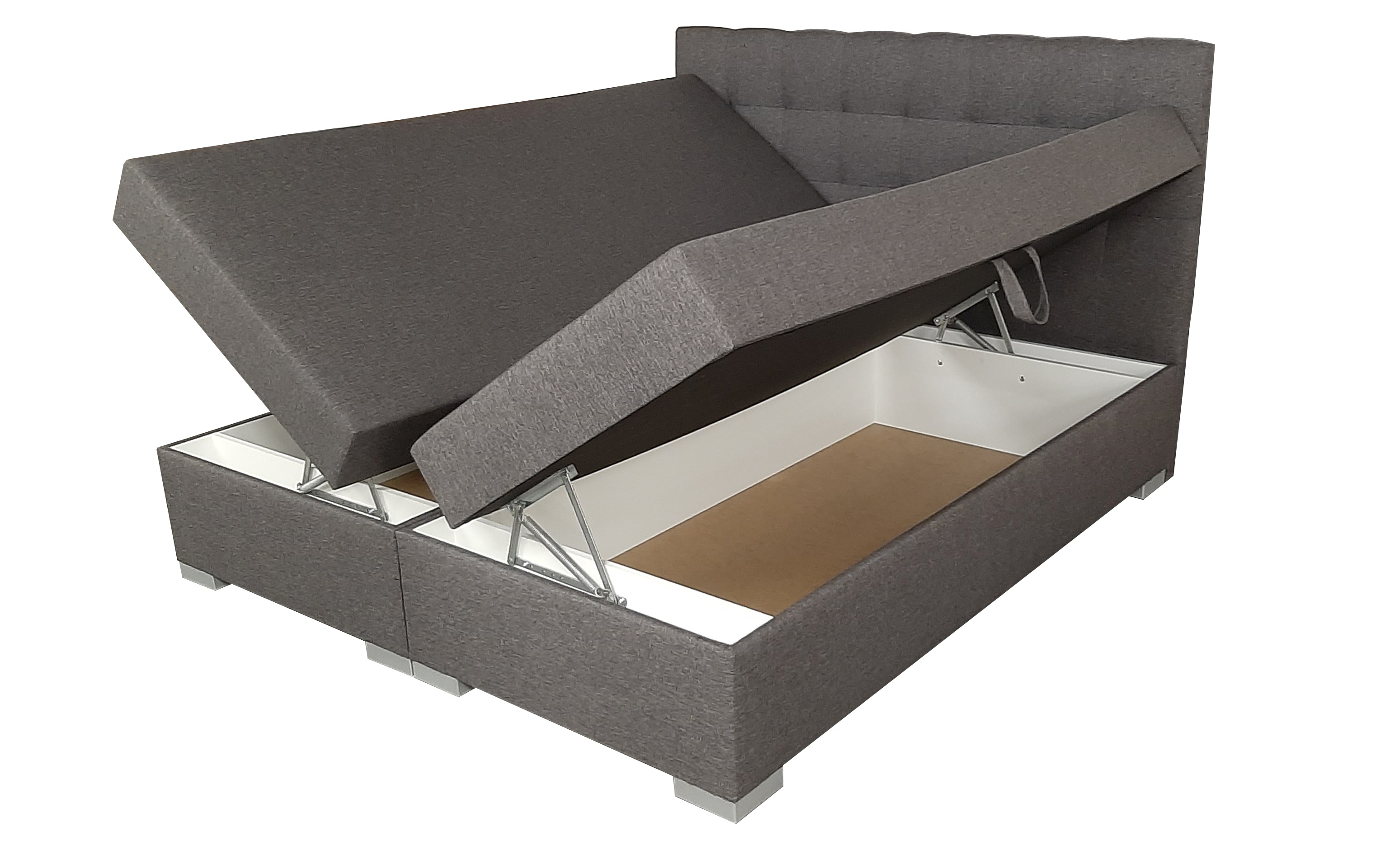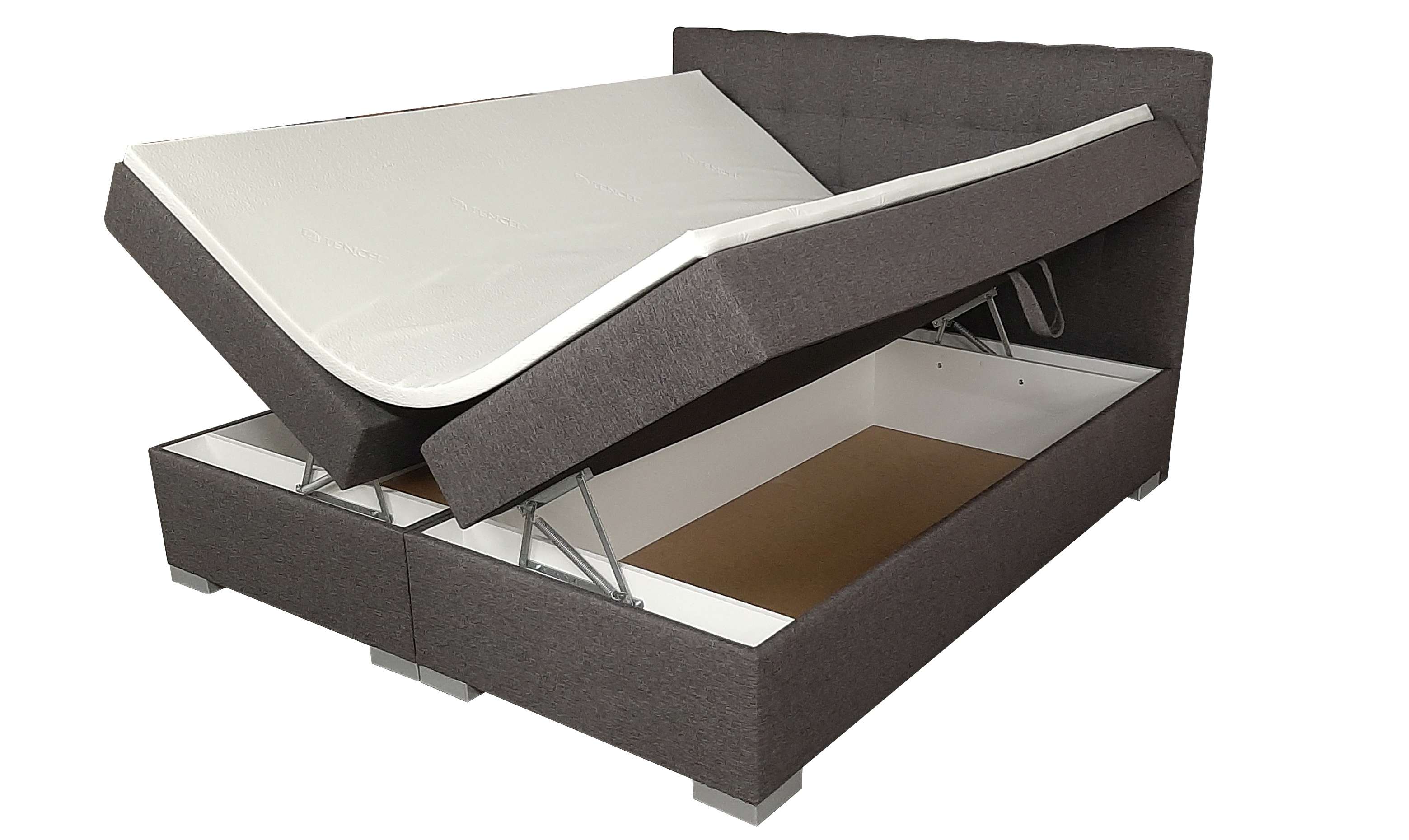 - Pružinové matrace typu Bonell a kvalitní PUR pěny jsou uložené na pevné desce s výklopem z boku. Nosnost do 130 Kg