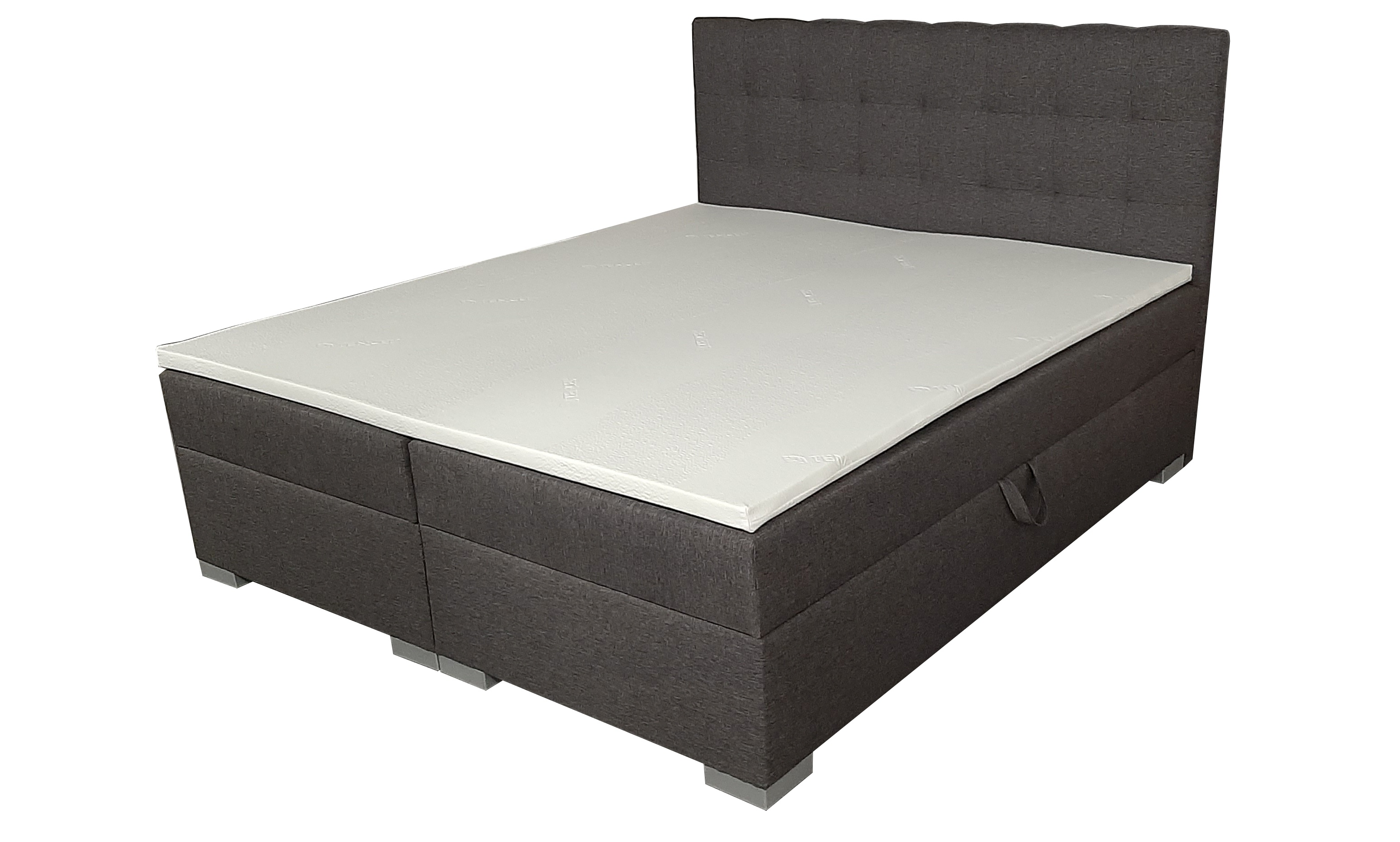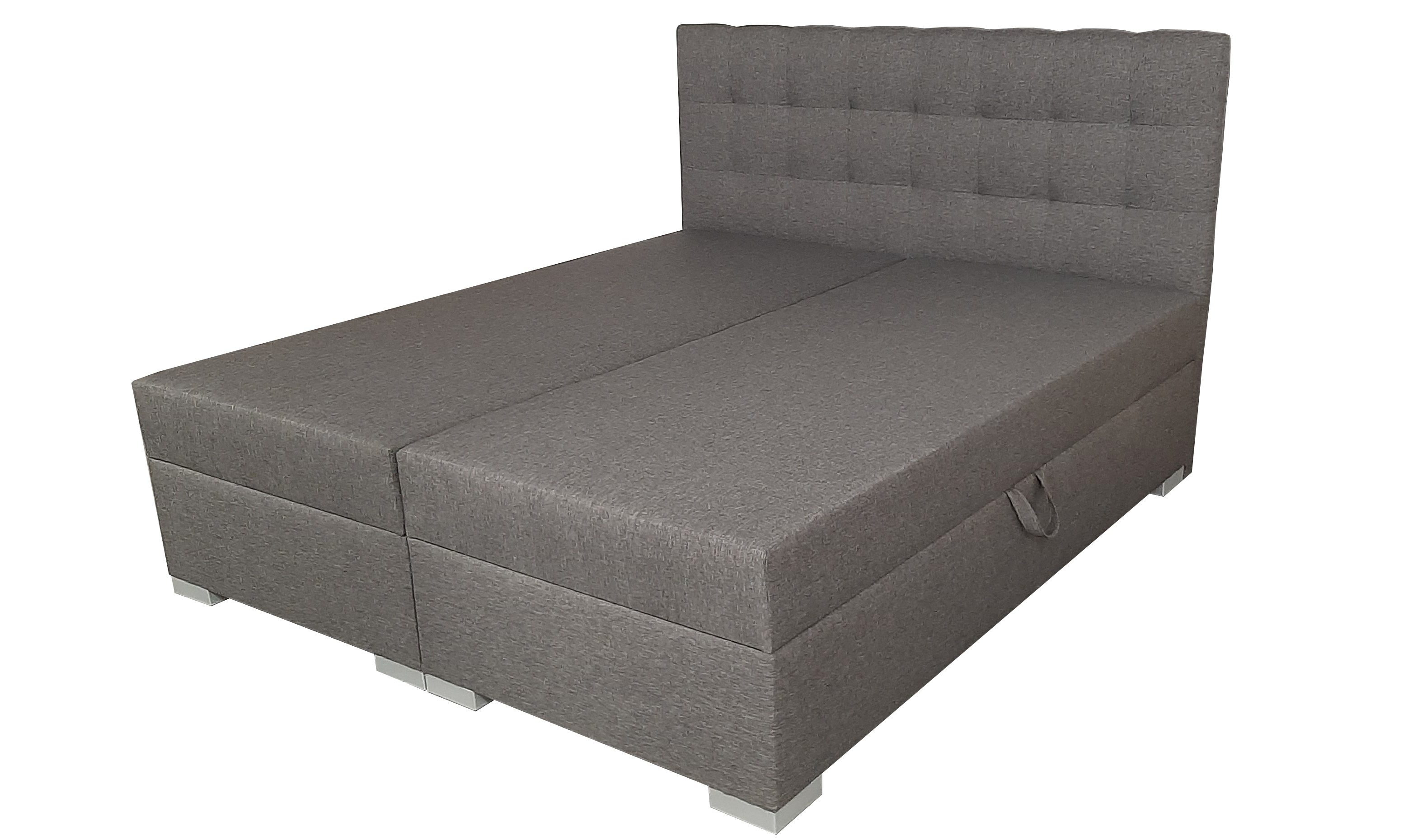 Čalouněné dvoulůžko ZLATA Boxspringového typu s úložným prostorem. Čelo ozdobené potahovanými knoflíky.