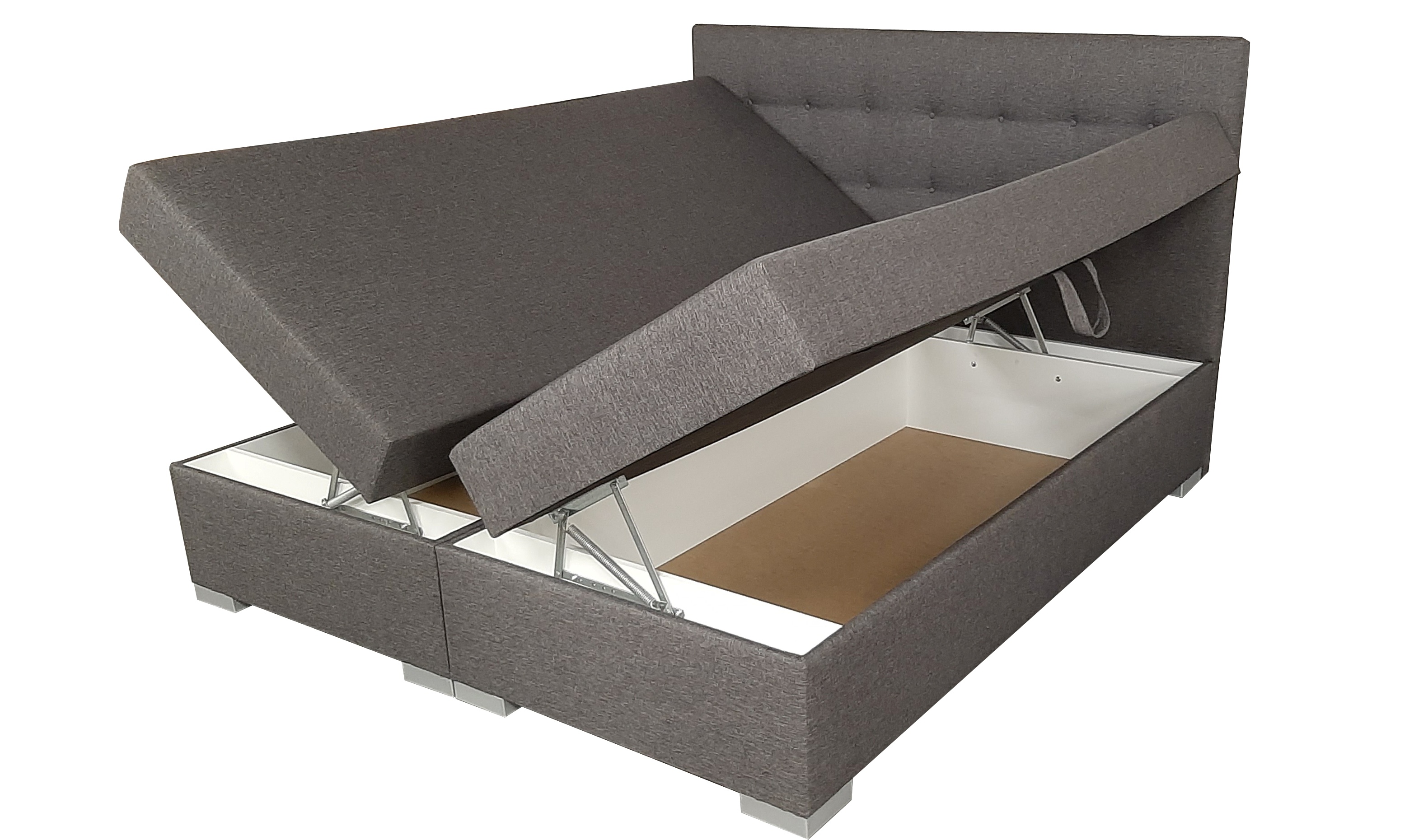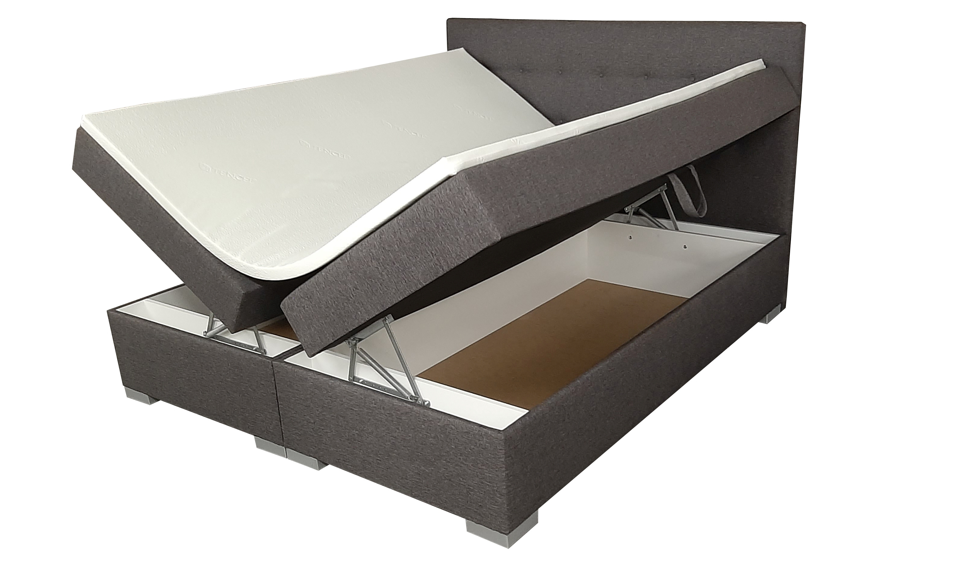 - Pružinové matrace typu Bonell a kvalitní PUR pěny jsou uložené na pevné desce s výklopem z boku. Nosnost do 130 Kg