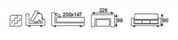 Rozkládací pohovka DUBLIN je vybavena rozkládacím mechanismem, který umožňuje snadnou a rychlou přeměnu pohovky na pohodlné lůžko, s lehací plochou na spaní 200 x 147 cm. Pohovka nabízí úložný prostor, který je ideální pro uložení ložního prádla, dek a polštářů. Rozkládací pohovka pohovka DUBLIN má šířku 226 cm, hloubku 99 cm a maximální výšku 90 cm. Tato velikost je ideální pro většinu obývacích pokojů. Pohovka DUBLIN je ideální volbou pro Vás, kteří hledají kvalitní, stylový a funkční kus nábytku pro obývací pokoj. S touto pohovkou získáte pohodlné místo k sezení i spaní, praktický úložný prostor a elegantní doplněk do Vašeho interiéru.
