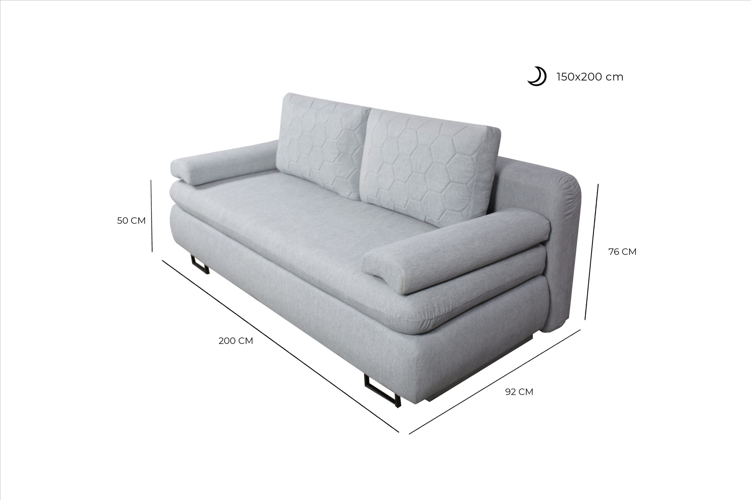 Rozměr: š. 200 cm x hl. 97 cm, v. 101 cm, výška sedu 50 cm, hl. lehací plochy bez rozložení je 80 cm