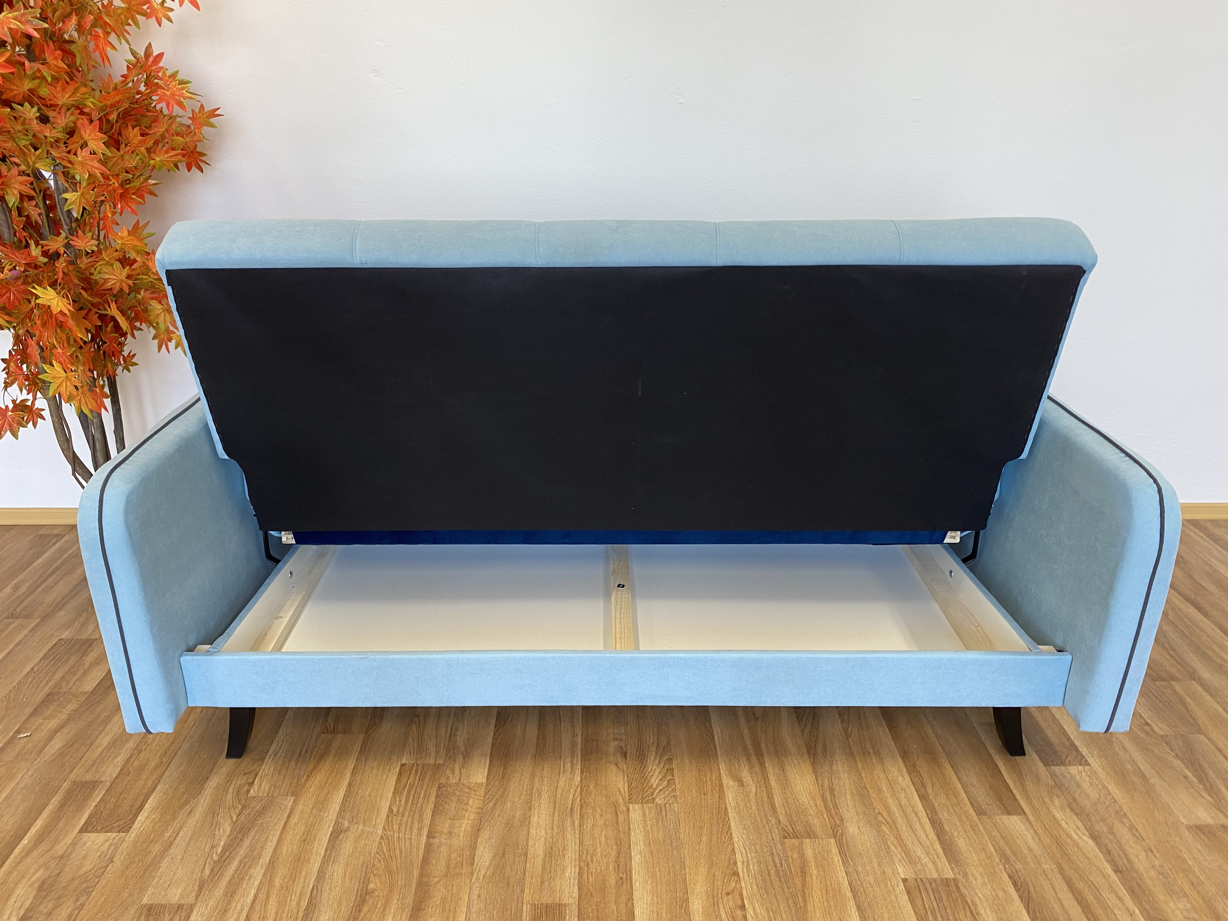 Rozkládací pohovka PRIMADONA se stane nepostradatelným kusem nábytku v domácnosti. Pohovka PRIMADONA je čalouněna látkou v zelenkavé barvě MILL 7373/paspulka tmavá, nohy ořech . Tuto pohovku snadno rozložíte pomocí systému KLIK-KLAK pro příležitostné spaní. Velikost spací plochy je o rozměrech 184 x 136 cm. Součástí je také úložný prostor pro uschování lůžkovin. Výplň sedáku tvoří Bonell pružiny a kvalitní PUR pěna.