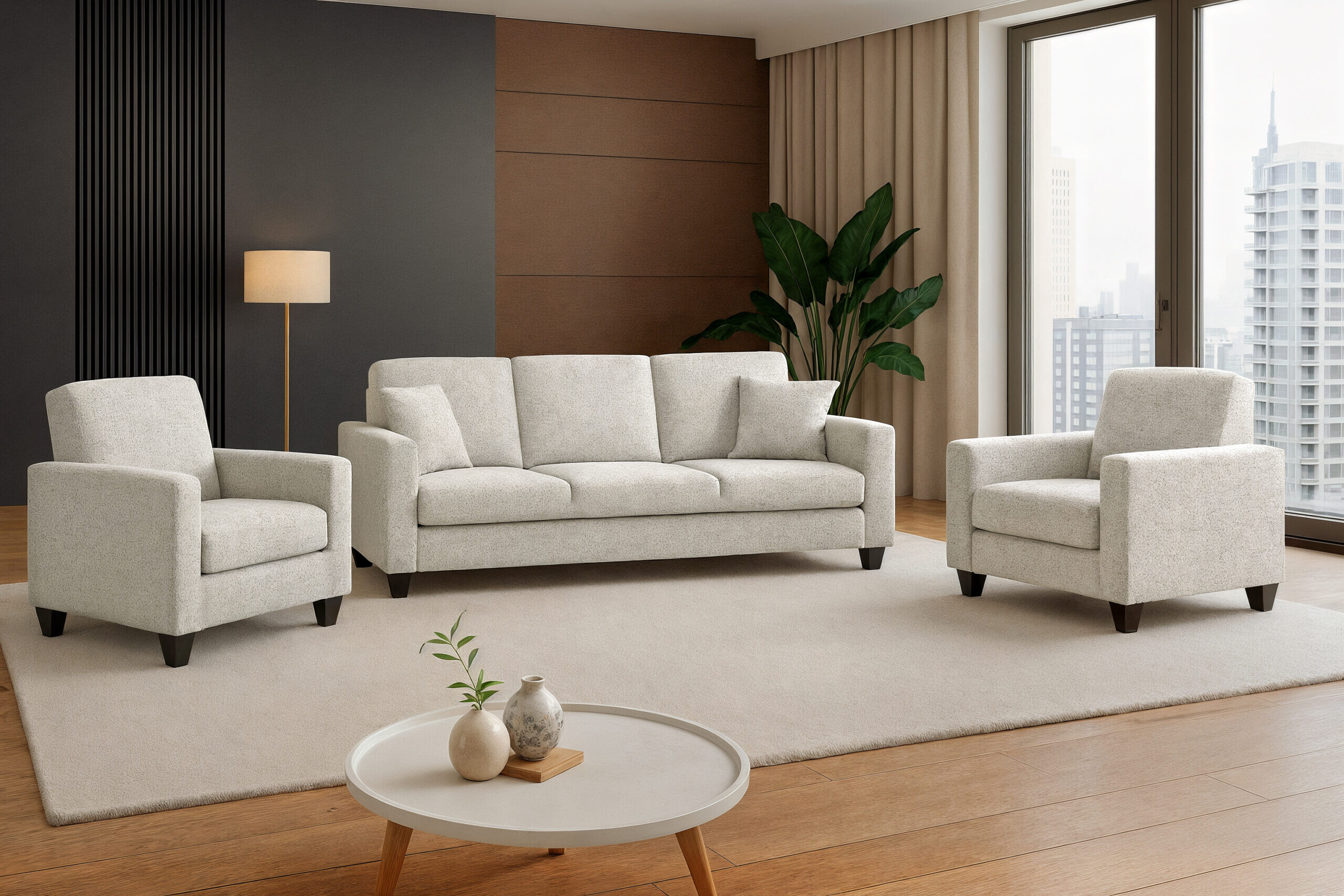 Klasická sedací souprava Charlot v provedení 3R+1+1. Čalouněná sedací souprava je vhodná do menších bytů, je složena z rozkládací pohovky a dvou křesel. Pohovka má úložný prostor a je rozkládací (rozklad klik/klak) k příležitostnému přespání. Výplň sedáku tvoří pružinové jádro a kvalitní PUR pěna. Sedací souprava je očalouněna kvalitní potahovou látkou (kvalitní látka proti žmolkování , velmi příjemná na dotek , vysoká otěruvzdornost).