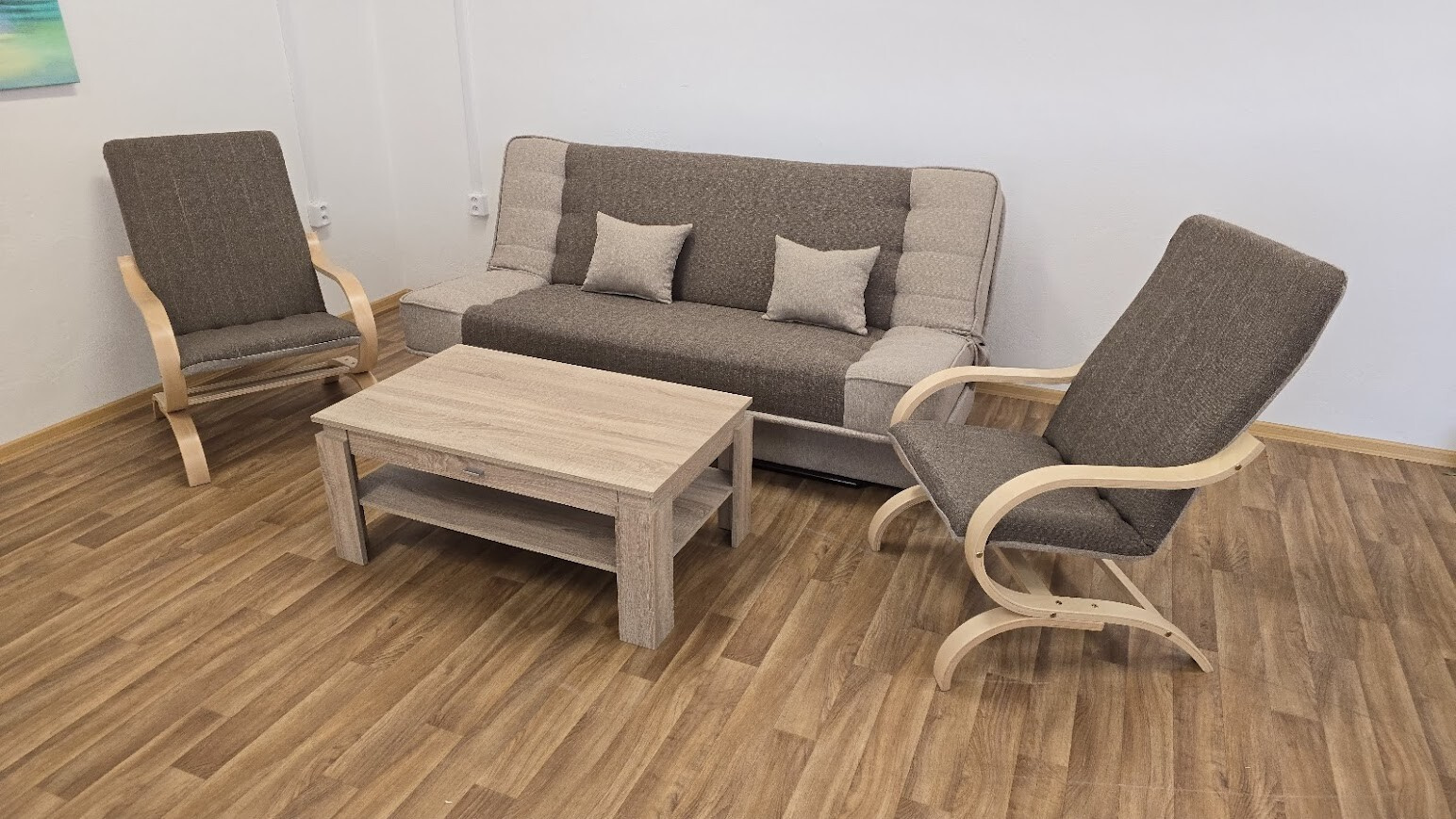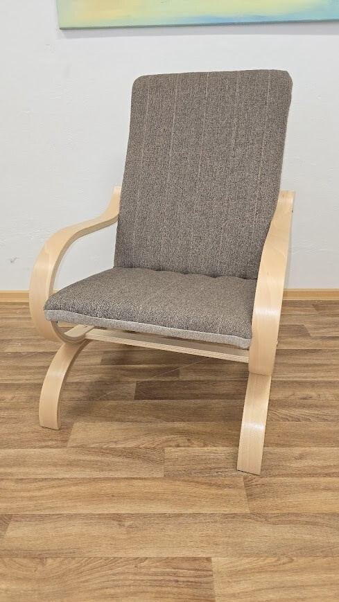 Čalouněné křeslo s dřevěnými područkami FILIP. Pohupovací křeslo FILIP je praktické, pohodlné a v příjemném barevném provedení. Křeslo se bude krásně vyjímat všude tam, kde je zapotřebí dalšího sedícího místa. Křeslo FILIP je očalouněno kombinací látek béžové a tmavě hnědé (viz.foto). Kostra je z bukových ohýbaných lamel v moření buk nebo ořech. Pohodlné sezení.