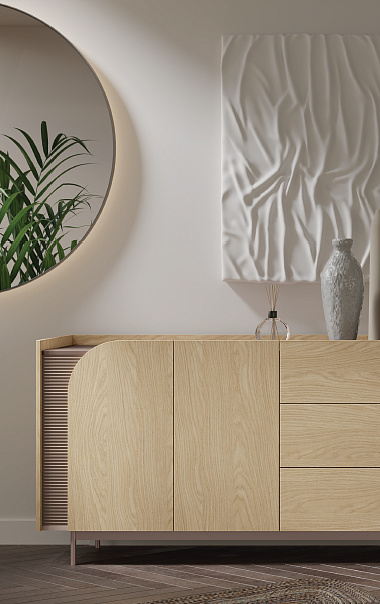 Moderní systémový nábytek do obývacího pokoje CARMEN. Elegantní nábytek s neobvyklými zaoblenými tvary čelních ploch s atraktivním vroubkovaným detailem. Moderní nábytek do obývacího pokoje CARMEN vyniká nadčasovým designem, který dokonale splňuje náročné interiérové požadavky. Zaoblené linie a jedinečná kombinace barevného provedení dub jarní / toffi vytvářejí silný dekorativní prvek. Široké možnosti uspořádání, které tato sada nábytku do obývacího pokoje nabízí, jí dodávají všestranný charakter, který se hodí do moderních i klasických interiérů. Výběr nábytku není určen pouze jeho vzhledem, ale také jeho funkčností. Moderní sektorový nábytek do obývacího pokoje CARMEN je vyroben z vysoce kvalitních materiálů, což zaručuje jeho trvanlivost, pevnost a vysokou odolnost proti poškození. Poskytuje dostatek úložného prostoru, pomáhá optimalizovat a pohodlně organizovat prostor a přizpůsobuje se Vašim individuálním potřebám.