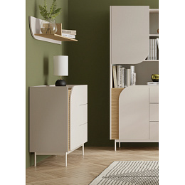 Moderní systémový nábytek do obývacího pokoje CARMEN. Elegantní nábytek s neobvyklými zaoblenými tvary čelních ploch s atraktivním vroubkovaným detailem. Moderní nábytek do obývacího pokoje CARMEN vyniká nadčasovým designem, který dokonale splňuje náročné interiérové požadavky. Zaoblené linie a jedinečná kombinace barevného provedení macadamia / dub jarní vytvářejí silný dekorativní prvek. Široké možnosti uspořádání, které tato sada nábytku do obývacího pokoje nabízí, jí dodávají všestranný charakter, který se hodí do moderních i klasických interiérů. Výběr nábytku není určen pouze jeho vzhledem, ale také jeho funkčností. Moderní sektorový nábytek do obývacího pokoje CARMEN je vyroben z vysoce kvalitních materiálů, což zaručuje jeho trvanlivost, pevnost a vysokou odolnost proti poškození. Poskytuje dostatek úložného prostoru, pomáhá optimalizovat a pohodlně organizovat prostor a přizpůsobuje se Vašim individuálním potřebám.