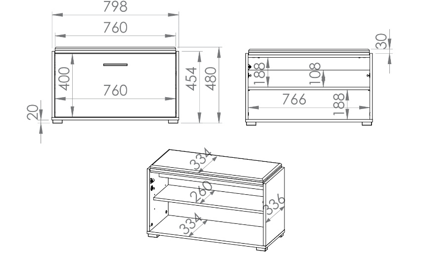 CARO 04 botník - výklopná dvířka, jedna police, čalouněný sedák