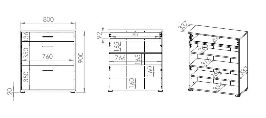 Rozměry: v. 90 cm / š. 80 cm / hl. 34 cm