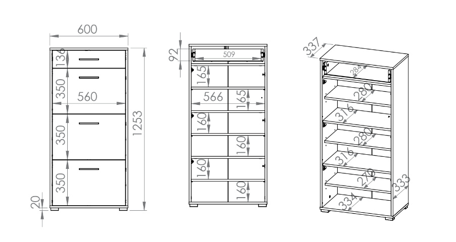 Rozměry: v. 125 cm / š. 60 cm / hl. 34 cm