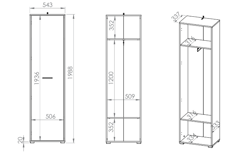 Rozměry: v. 199 cm / š. 55 cm / hl. 34 cm