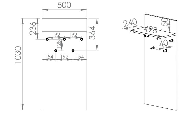 CARO 17 věšákový panel - závěsný na zeď, s horní odkládací poličkou