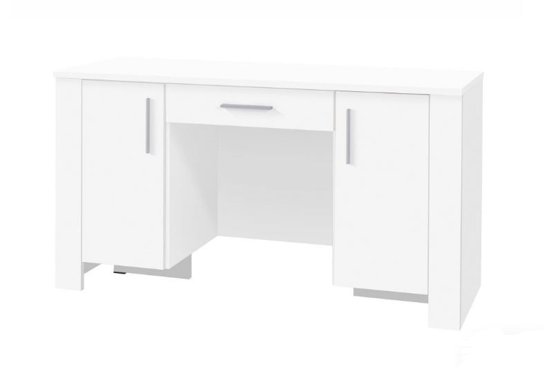 PC stůl CZ 17 ze systému CEZAR - dvoje dvířka po stranách uvnitř police, uprostřed výsuv pro klávesnici nebo šuplík (obě varianty v balení)