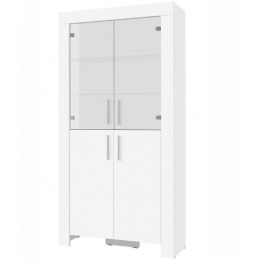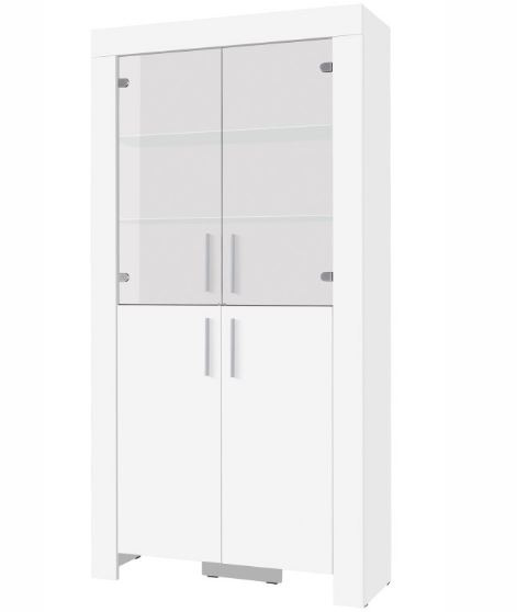 Vitrína CZ 3 ze systému CEZAR - čtyřdveřová s policemi, spodní dvou dvířka plná, horní dvou dvířka prosklená a skleněné police, možnost dokoupení LED osvětlení