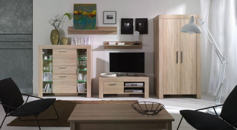 Moderní nábytkový systém CEZAR. Sektorový nábytek CEZAR se vyrábí z kvalitního lamina v dekoru dub sonoma a vyniká velice kvalitním zpracováním jednotlivých dílů. Sektor CEZAR působí masivním dojmem, díky perfektnímu propracování všech detailů. K dispozici máte 27 dílů, které Vám umožní zařídit obývací pokoj, pracovnu, ložnici nebo studentský pokoj. Kování a pojezdy jsou kovové. Úchytky plastové v barvě dubu sonoma. Do prosklených vitrín lze dokoupit LED osvětlení.