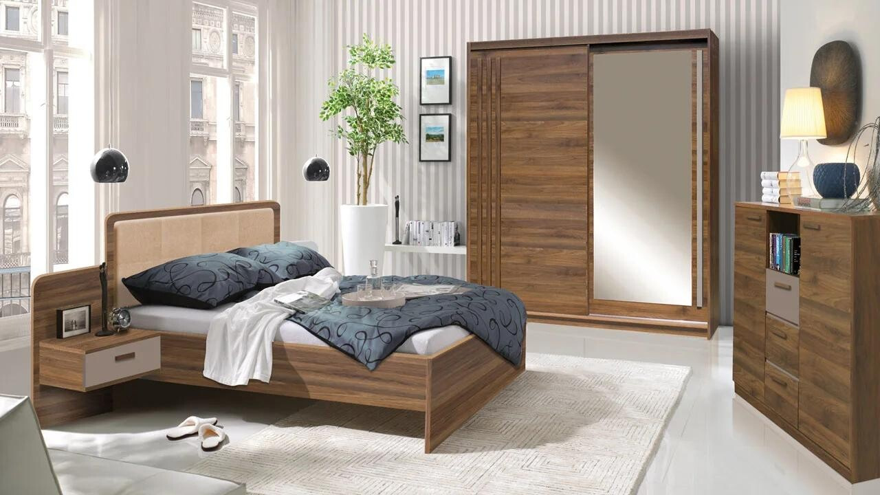 Moderní systémový nábytek pro Vaši ložnici, dodá interiéru příjemný nádech elegance a luxusu. Prostorné šatní skříně se zrcadlem, noční stolky, postele, komody. Sektor Charlot můžete mít ve čtyřech barevných dekorech. Šatní skříně s posuvnými dveřmi ve třech rozměrech.