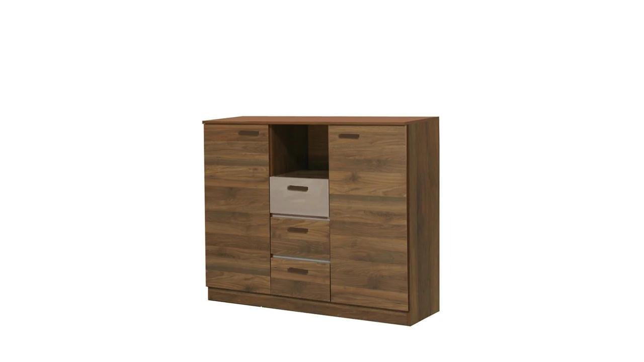 Komoda EF3K ze systému CHARLOT - kombinovaná s policemi, dvířky, šuplíky a otevřenou odkládací nikou