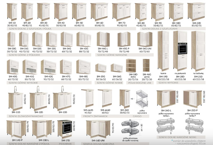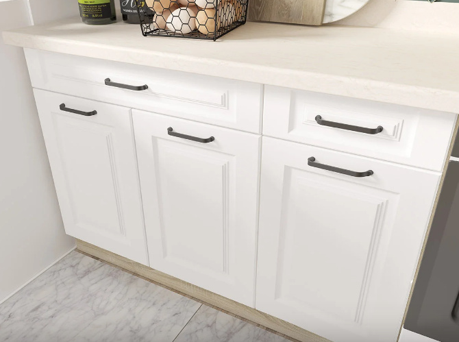 Spodní kuchyňské skříňky se dodávají bez soklu a bez pracovní desky, které si můžete vybrat z naší nabídky.