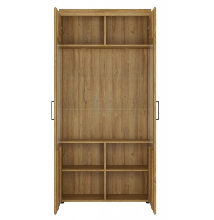 Vitrína - dvoudveřová, částečně prosklená s policemi, v prosklené části skleněné police - možno dokoupit LED osvětlení