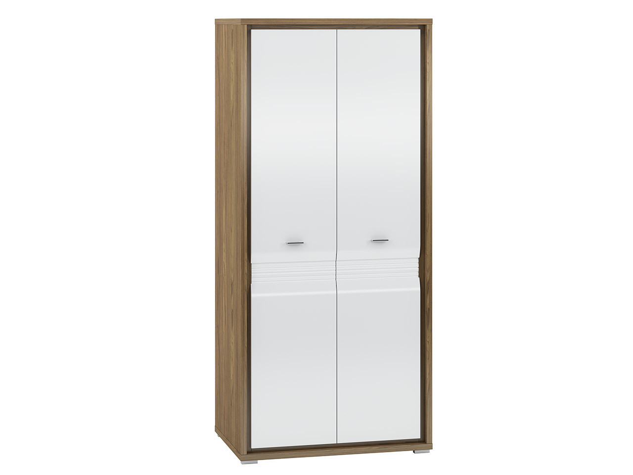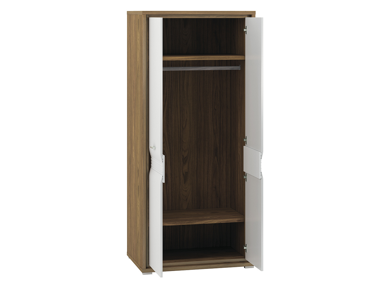 Šatní skřín DALLAS 01 - dvoudvéřová s šatní tyčí a dvěma policemia, v horní a spodní části skříně.