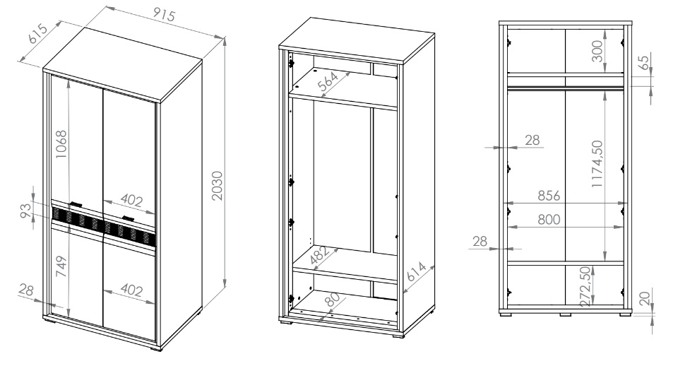Rozměry: š. 92 cm / v. 203 cm / hl. 62 cm