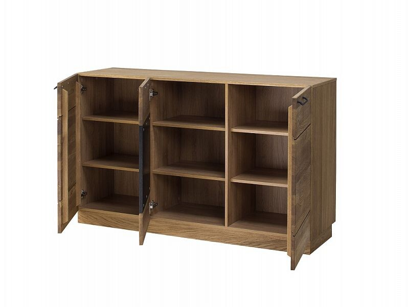 DALTON komoda - trojdvířková, policová, prosklená prostřední dvířka.