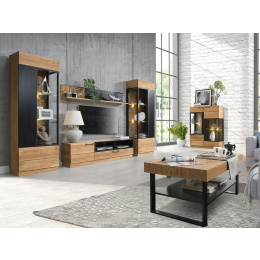 DALTON, moderní, elegantní a funkční systémový nábytek vyrobený z masivního dřeva v barevném provedení dub medový / černá mat. Korpus je dýhovaný, dvířka jsou vyrobená z olejovaného, kartáčovaného masivu ( s přiznanou strukturou dřeva ), doplněná prvky z kovu v černé barvě. Tiché dovírání dvířek Slow Motion. K vitrínam je možno dokoupit LED osvětlení.