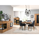 DALTON, moderní, elegantní a funkční systémový nábytek vyrobený z masivního dřeva v barevném provedení dub medový / černá mat. Korpus je dýhovaný, dvířka jsou vyrobená z olejovaného, kartáčovaného masivu ( s přiznanou strukturou dřeva ), doplněná prvky z kovu v černé barvě. Tiché dovírání dvířek Slow Motion. K vitrínam je možno dokoupit LED osvětlení.