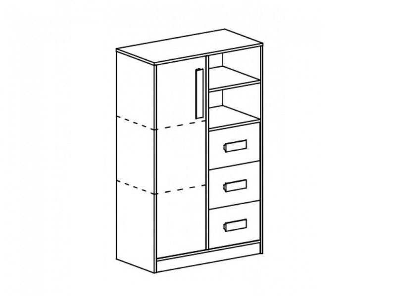 Komoda DAVID 5 - polovina plná dvířka s policemi, polovina otevřená nika s poličkou a šuplíky