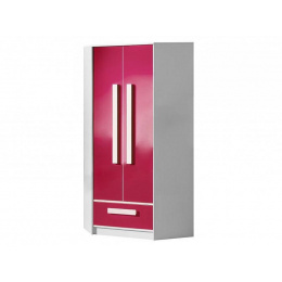 Šatní skříň rohová DAVID 2 - dvoudveřová s policemi, šatní tyčí a šuplíkem