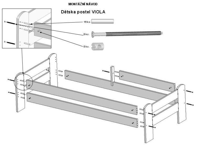 Postel LEONARDO je dodávána v demontovaném stavu včetně roštu, BEZ matrací.