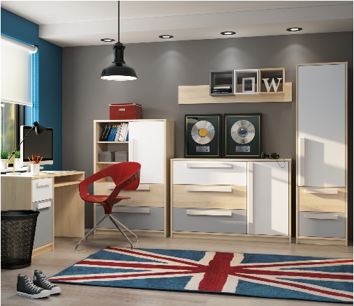 Moderní systém DROP je navržen podle nejnovějších trendů. Přírodní barvy nábytku a geometrický tvar rukojeti podtrhují jeho jednoduchost a praktičnost. Sektor je ideální pro studentské pokoje. Díky rozmanitosti jednotlivých prvků Vám systém DROP umožňuje vytvářet individuální uspořádání přizpůsobené chlapeckému i dívčímu pokoji. Systém DROP se skládá z 20 dílů v různých barevných kombinacích. Nábytek je vyroben z lamino desky vysoké kvality, která je odolná proti poškrábání, vlhkosti a vysokým teplotám.