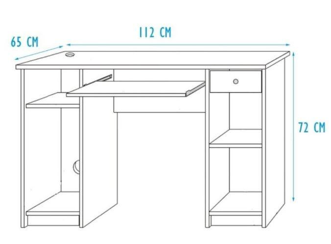 - PC stůl - 3 x otevřená police, 1 x zásuvka, 1 x výsuvná deska, stolová deska 112 x 65 cm, v. 72,5 cm, otvor na kabeláž