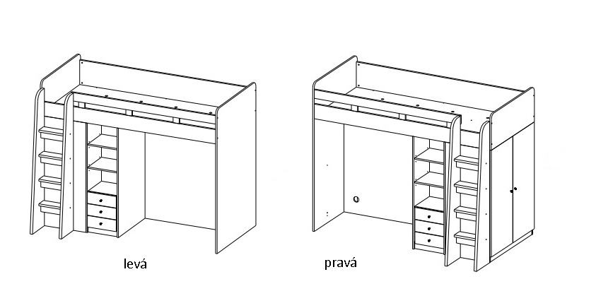 - postel - lehací plocha 90 x 200. Matrace 90 x 200 není součástí sestavy, můžete si jí vybrat z naší nabídky matracímatrací