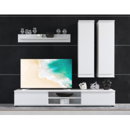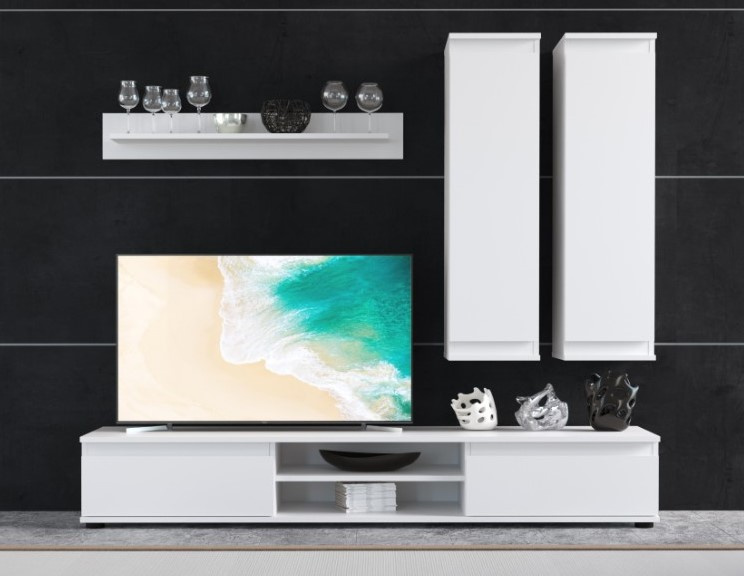 Obývací stěna vytvoří ve vašem obývacím pokoji příjemnou atmosféru a dodá eleganci celému vašemu interiéru. Nábytek je odolný proti poškrábání, vlhkosti a vysokým teplotám a je vyroben z vysoce kvalitního lamina o síle 16 mm. Obývací stěna je z lamina v bílé barvě.