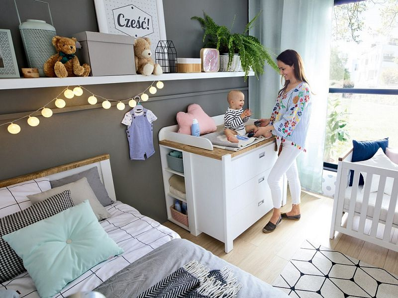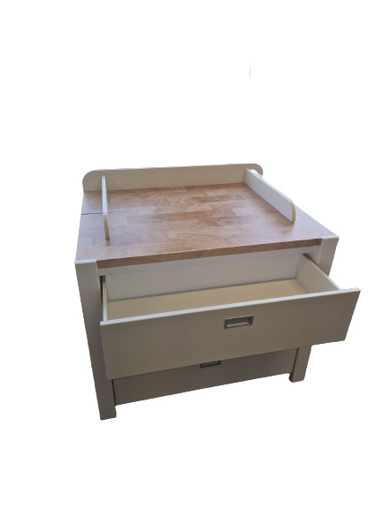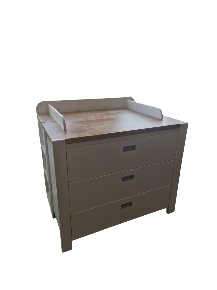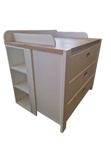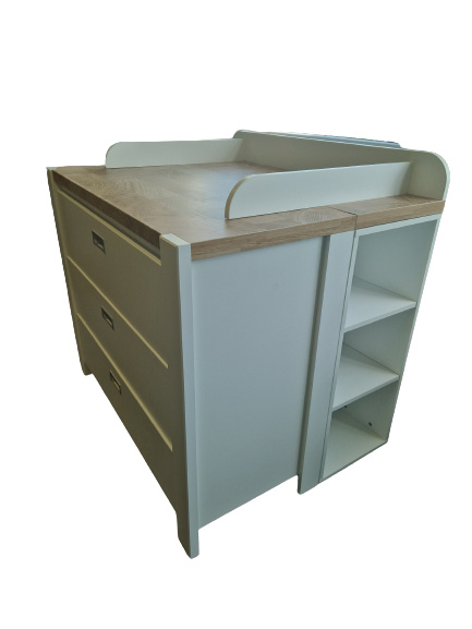 Sestava přebalovacího pultu s komodou KOM3S - bezpečnostní boční lišty, praktické otevřené police na bocích pultu, komoda se 3 šuplíky