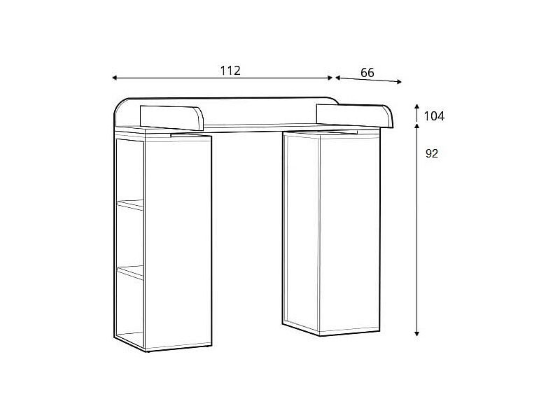 Rozměry celé sestavy: š. 112 cm / v. 104 cm / hl. 84 cm, výška desky přebalovacího pultu: 92 cm