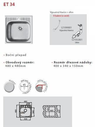 Kvalitní nerezový dřez s nádobou 400 x 340 x 150 mm