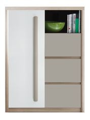 Komoda ze systému ELA - kombinovaná komoda s otevřenou policí, šuplíky a skříňkou s policemi.