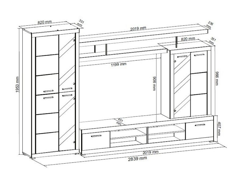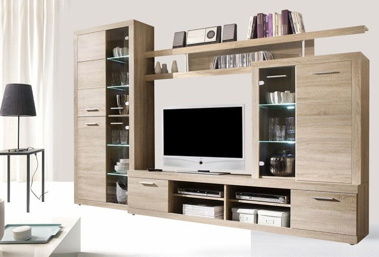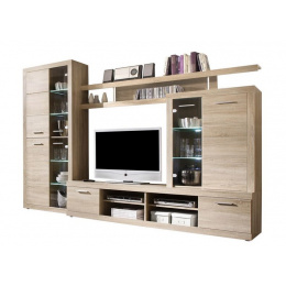 Obývací stěny představují elegantní řešení jak využít prostor v obývacím pokoji. Obývací stěna ELENA nabízí uzavřené úložné prostory s policemi, prosklené vitríny, police i televizní stolek. Stěnu ELENU můžete doplnit LED osvětlením - 6ks klipů za 690,- Kč. Všechny skříňky jsou vyrobeny z kvalitního lamina v dekoru dub sonoma.