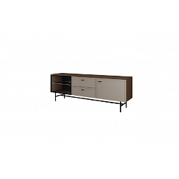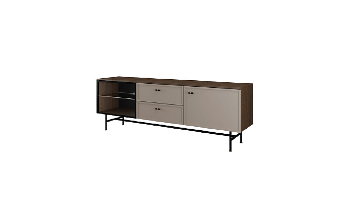 Televizní stolek 11 za systému ELORA - částečně prosklený s šuplíky uprostřed a plnými dvířky na jedné straně