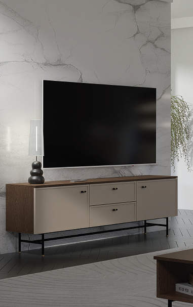 ELORA systémový nábytek do obývacího pokoje. Vkusný, jednoduchý, elegantní. Moderní nábytek do obývacího pokoje ELORA vyniká nadčasovým, minimalistickým designem, který dokonale splňuje náročné interiérové požadavky. Hladké linie a jedinečná kombinace barevného provedení baltic storm a toffi vytvářejí silný dekorativní prvek. Široké možnosti uspořádání, které tato sada nábytku do obývacího pokoje nabízí, jí dodávají všestranný a univerzální charakter, který se hodí do moderních i klasických interiérů. Výběr nábytku není určen pouze jeho vzhledem, ale také jeho funkčností. Moderní sektorový nábytek do obývacího pokoje ELORA je vyroben z vysoce kvalitních materiálů, což zaručuje jeho trvanlivost, pevnost a vysokou odolnost proti poškození. Poskytuje dostatek úložného prostoru, pomáhá optimalizovat a pohodlně organizovat prostor a přizpůsobuje se Vašim individuálním potřebám.