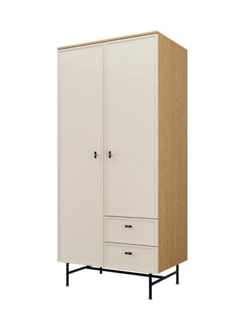 Šatní skříň 1 za systému ELORA - dvoudveřová s policemi, šatní tyčí a šuplíky
