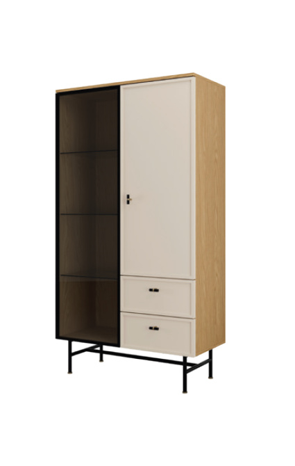 Vitřína 4 za systému ELORA - částečně prosklená, se skleněnými policemi, plnými dvířky a šuplíky