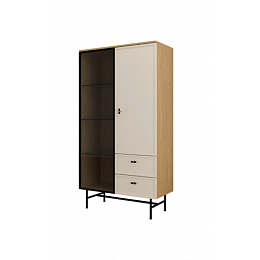 Vitrína 4 za systému ELORA - částečně prosklená, se skleněnými policemi, plnými dvířky a šuplíky