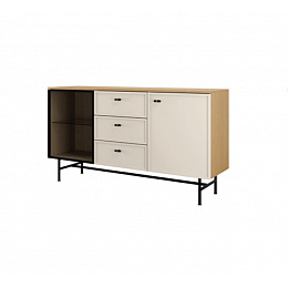 Komoda 7 za systému ELORA - částečně prosklená, se skleněnou policí, plnými dvířky a šuplíky šuplíky uprostřed