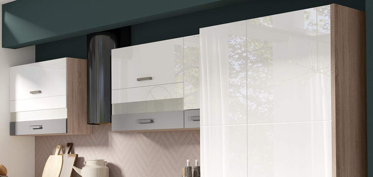 Moderní kuchyňská sestava EVA s dvířky v atraktivním barevném provedení, je ideální volbou, pokud Vám nevyhovují nabízené kuchyňské sestavy. Linku EVA si můžete sestavit z jednotlivých dílů podle vlastních představ. Součástí kuchyňského systému jsou všechny skříňky, bez kterých se žádná kuchyně neobejde. Kuchyňská linka EVA je vyrobena z kvalitního lamina. Šuplíky dolních skříněk jsou opatřeny kvalitními pojezdy a kováním. Dvířka mají tiché dovíraní (GTV). Dvířka a šuplíky májí výrazné kovové úchyty. Pokud chcete sestavu podle vlastních rozměrů vyberte si kuchyňskou linku na míru EVA.